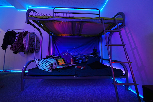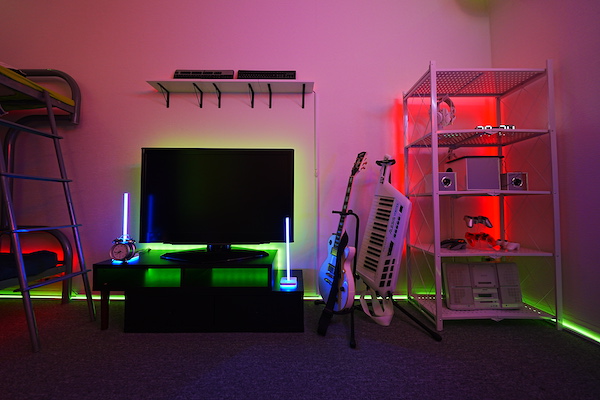 広いリビングと男の子部屋、電車や教室といったシチュエーションセットのフロア。黒・白両ホリゾントでの撮影も可能です。