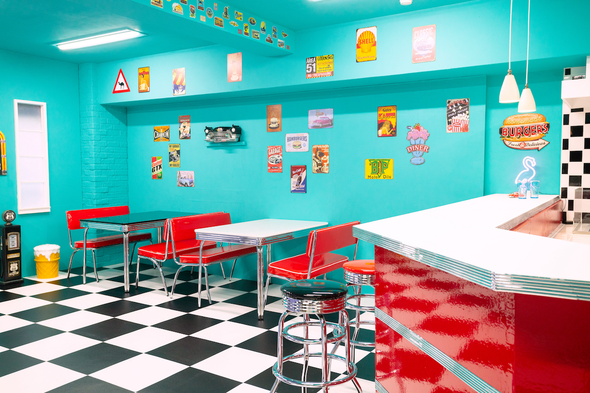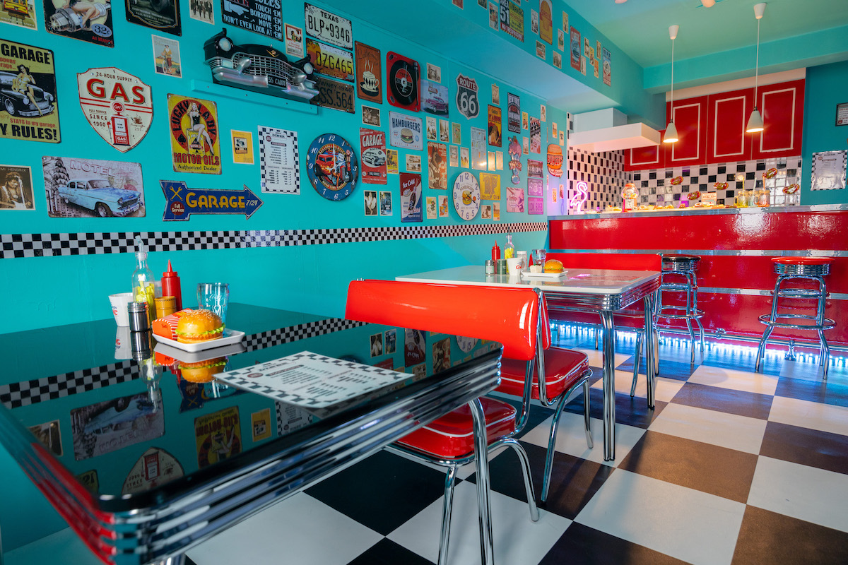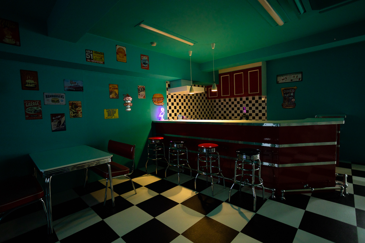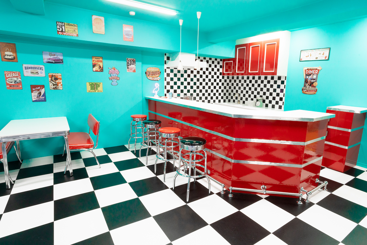 白を基調とした自然光の入るフロア。ダイナーブースが新登場!